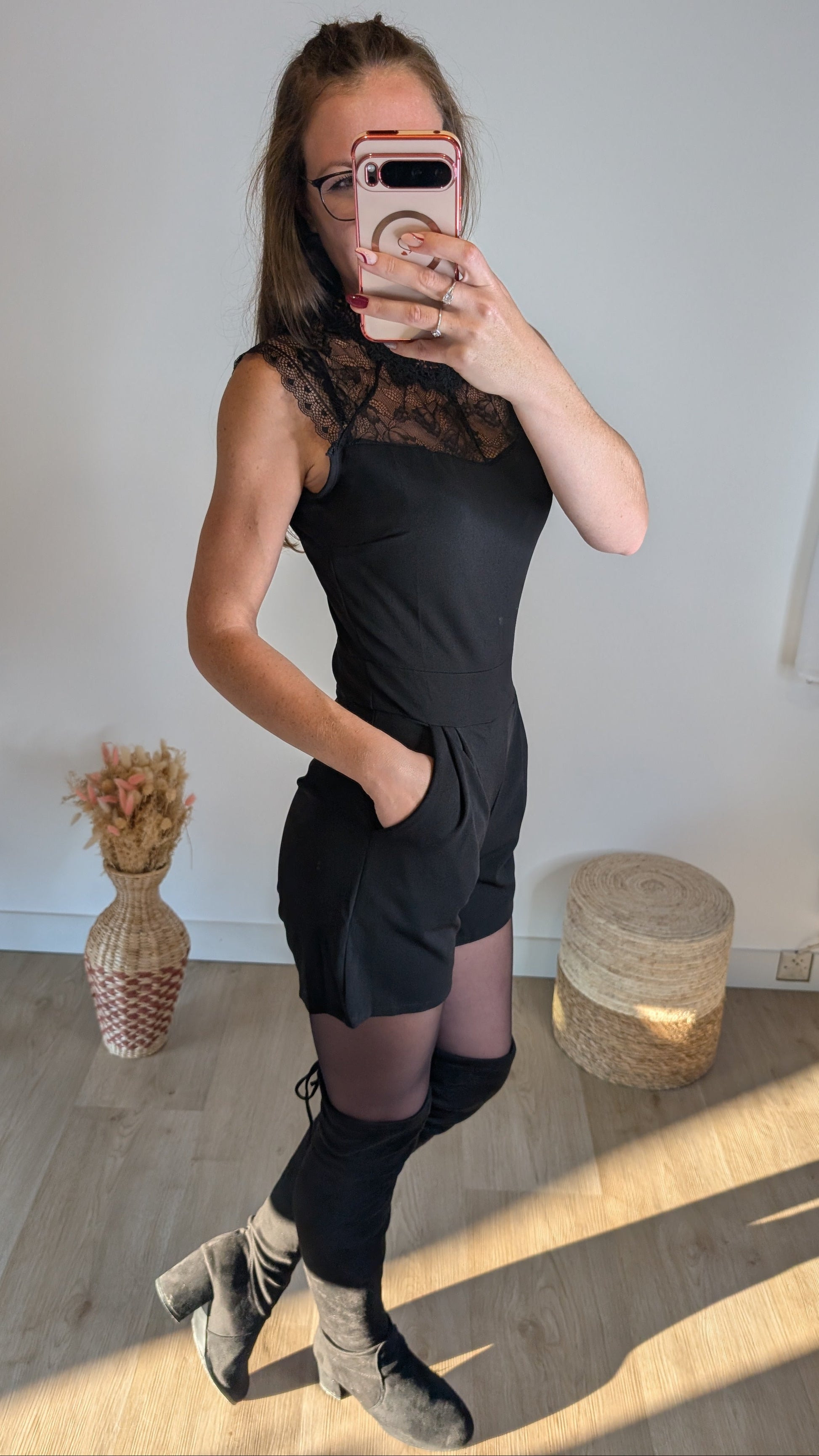 ✨Combishort noir en dentelle élégante