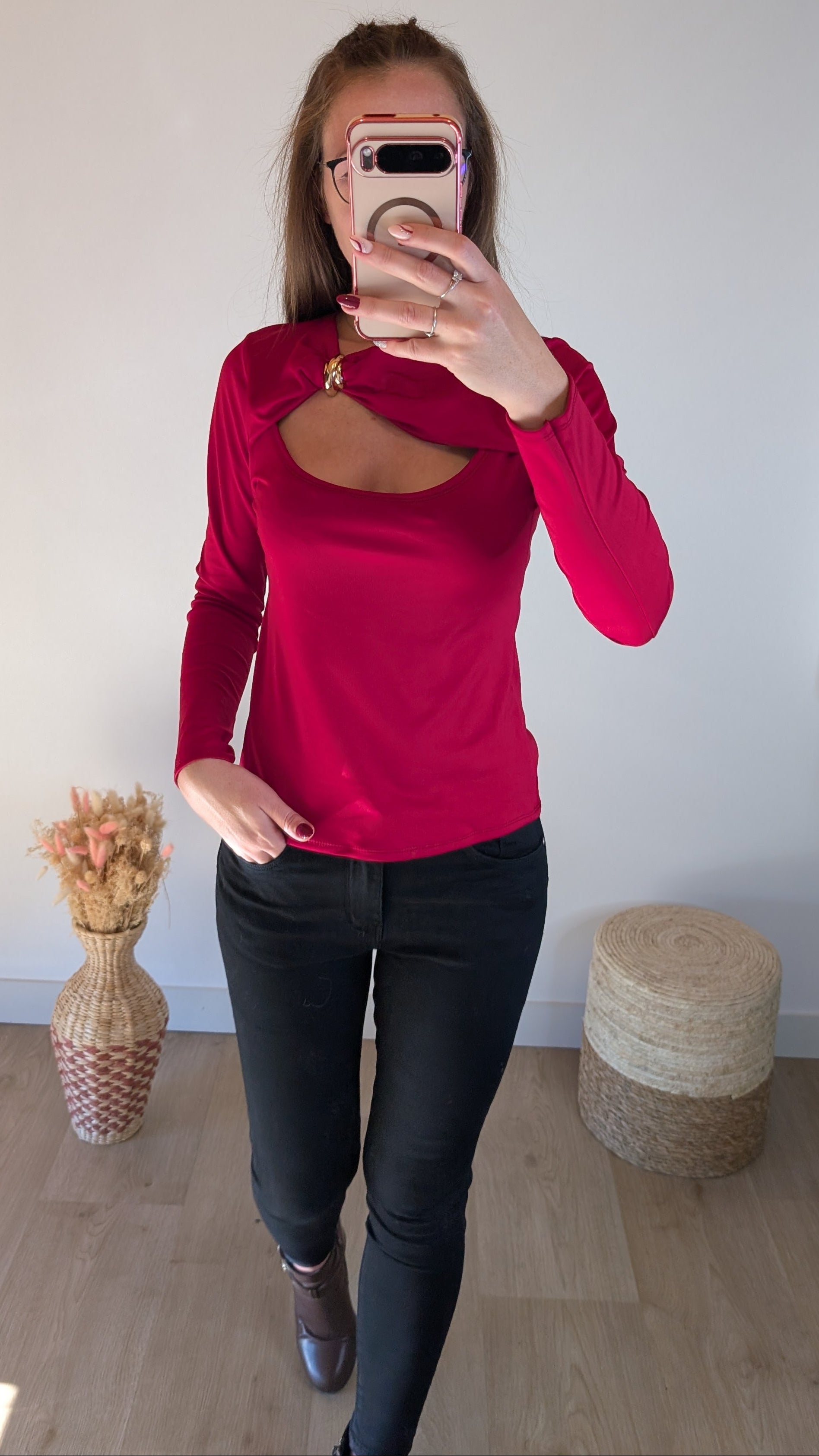 Top élégant avec son anneau doré et son style original pour un look moderne et chic, ce top met en valeur votre tenue grâce à son élégance.